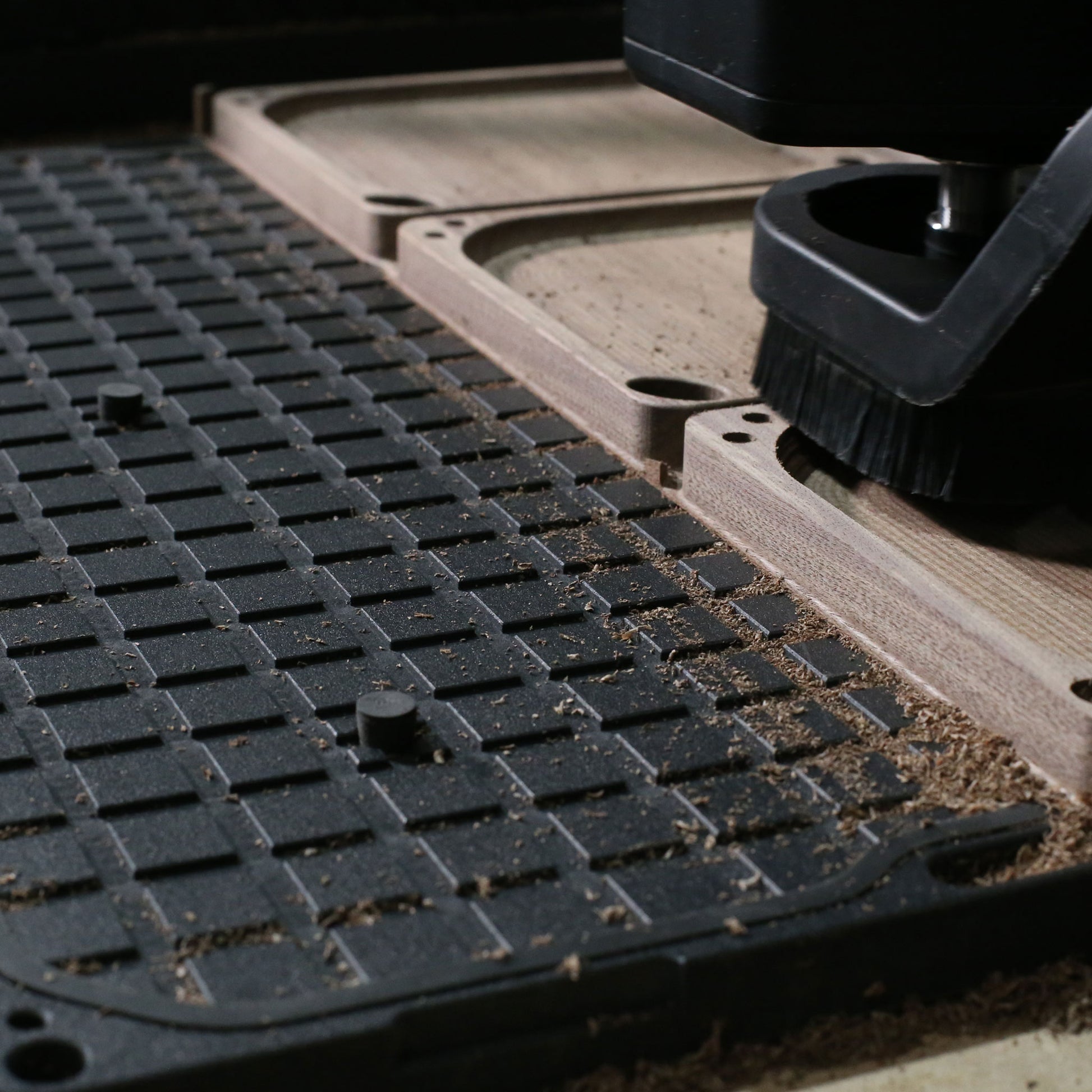 Vacuum workholding removes the need for clamps, screws, tapes, or glues. You can secure your work to the table faster than ever, and there will be no obstacles in the way for your machine to run into. No more crashing your machine or breaking bits on clamps and screws!